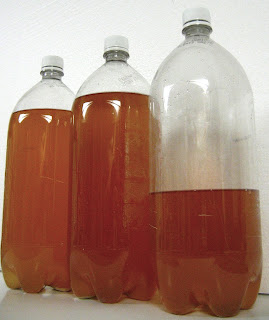 Since I hadn't yet purchased any glass bottles or a capper and was already fairly convinced that I had produced the Brew of Doom I figured I might as well stick with the Simplest Homemade Beer plan and use two liter plastic bottles.